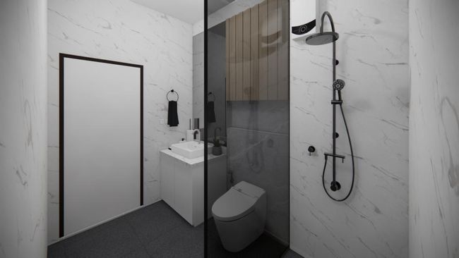 Model sekat kamar mandi dengan bingkai kaca aluminium kotak-kotak memberikan kesan tampilan industrial minimalis untuk kamar mandi kamu. Selain itu, bingkai kotak-kotak juga menambah estetika kamar mandi kamu sehingga terasa mewah.