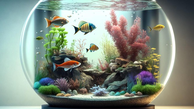 - Diisi dengan ikan-ikan cantik dan bahagia yang hidup di akuarium bersih
