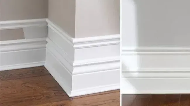 Baseboard ini hadir dengan bentuk yang sederhana hingga yang rumit. Material pada baseboard ini terdapat plastik biasanya dipakai untuk bangunan komersial, sedangkan alas tiang memberikan sentuhan akhir pada tempat tinggal kamu.