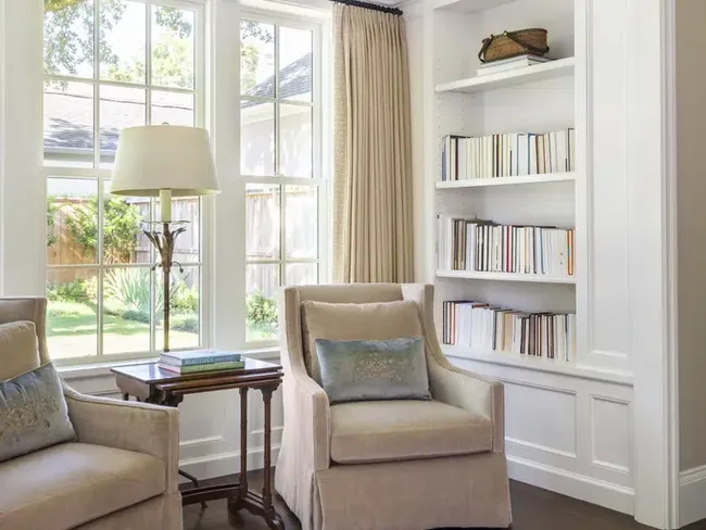 Luas rumah terbatas bukan halangan untuk menyalurkan hobi. Kamu bisa membuat area baca yang aestetik dan cantik di dekat jendela. Pilih perabotan yang kuat untuk menahan bobot, bisa memakai bahan kayu. Lalu bikin lemari kabinet untuk meletakkan buku dan hiasan lainnya sehingga tampilannya tidak kaku.