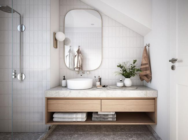 Disarankan untuk memilih lampu dinding agar pencahayaan lebih baik. Lampu dinding merupakan alternatif yang sangat baik untuk pencahayaan di atas kepala, terutama di kamar mandi kecil.