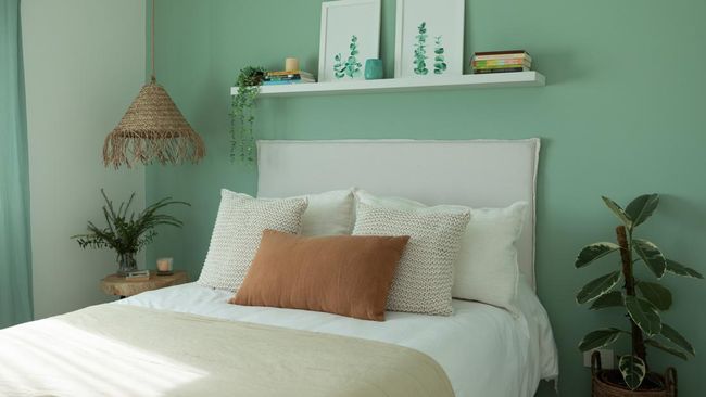 Namun, memilih warna gelap untuk cat dinding juga tidak bisa sembarangan. Misalnya, memadukan warna hijau tua yang gelap dengan sentuhan putih dan krem pada furnitur di kamar. Hal ini membuat kamar tidur tetap terlihat hidup meski didominasi warna gelap.