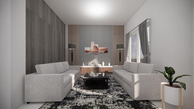 Ruangan dengan tema ini biasanya menggunakan furnitur berwarna hitam, putih, dan abu-abu. Agar ruang keluarga tidak terlihat gelap dan membosankan, bisa gunakan cat dinding berwarna abu-abu atau putih dan dikombinasikan dengan aksen kayu agar ruangan terlihat terang, namun tetap elegan.