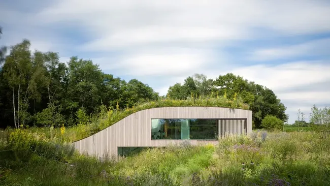 Rumah ini dirancang oleh WillemsenU. Rancangan rumah seperti ini dapat memberikan privasi bagi pemiliknya. Bahkan, kamar tidurnya berada 6 meter di bawah tanah, sementara ruang tamunya berada di permukaan tanah dengan atap yang diselimuti oleh bunga liar.