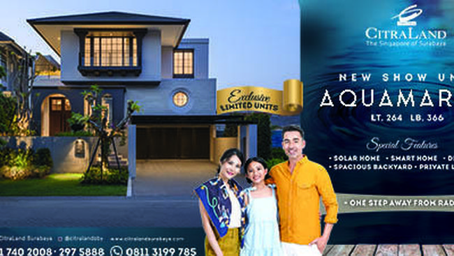 CitraLand Surabaya menghadirkan tipe rumah Aquamarine dengan konsep Modern Post Colonial , Interior Modern Tropical dan banyak ruang terbuka untuk memaksimalkan sirkulasi udara. Dengan spesifikasi dimensi rumah 12x22 meter, rumah ini menawarkan ruang yang luas dan nyaman untuk keluarga.