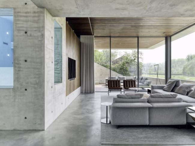 Lantai semen ekspos memberi kesan rumah belum selesai dibuat atau unfinished. Meski tampilannya seperti bangunan belum selesai, gaya ini cukup digemari sebagian masyarakat.