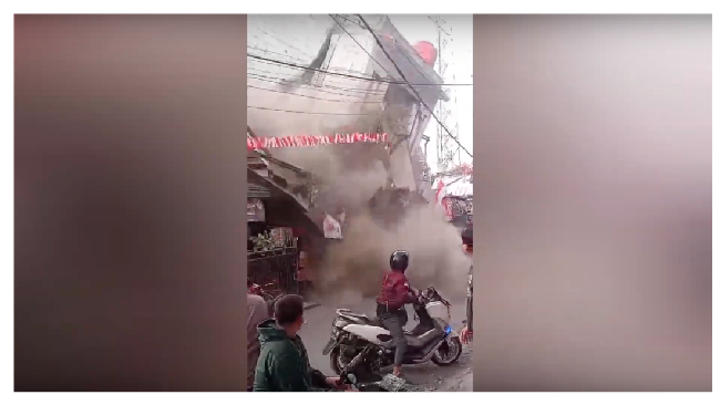 Sebuah video yang sedang ramai beredar menunjukkan rumah tiga lantai ambruk di Kampung Cilisung, Desa Sukamenak, Kecamatan Margahayu, Kabupaten Bandung. Penghuni rumah senpat menyadari ada suara dan retakan dari tembok, namun rumah itu berakhir rubuh.