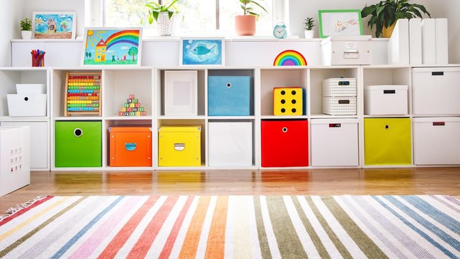 Warna neon digunakan pada karpet sebagai cara yang menyenangkan untuk memadukan warna aksen, tetapi ada cara lain untuk mendesain ruangan dengan cara yang menyenangkan seperti dengan cat atau seni dinding.