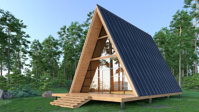 Rumah berbentuk A-Frame sangat populer karena memungkinkan kamu menikmati pemandangan tanpa gangguan. Pada saat yang sama, kurangnya tempat penyimpanan dan lebih sedikit kamar sehingga tidak cocok untuk menjadi rumah utama.
