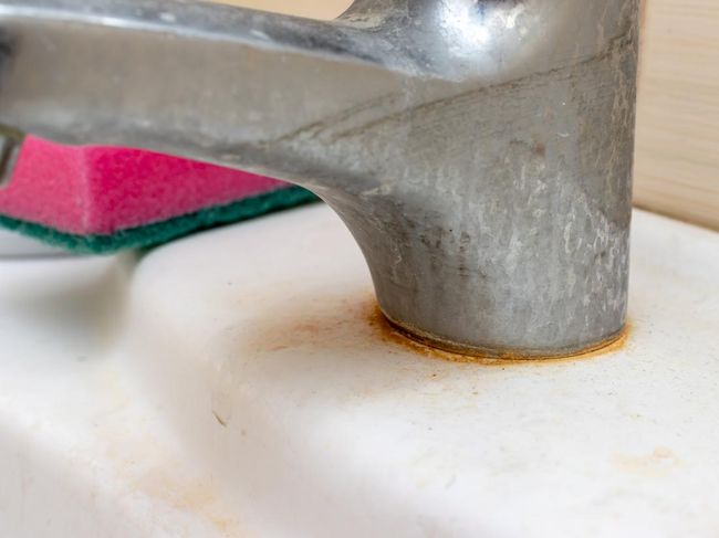 Kalau mau membersihkan endapan kalsium dan kapur yang ada di air sadah, bisa dengan cuka. Caranya dengan menyemprotkan campuran cuka putih dan air dengan perbandingan 1:1. Selanjutnya diamkan selama 2-3 menit lalu bersihkan.