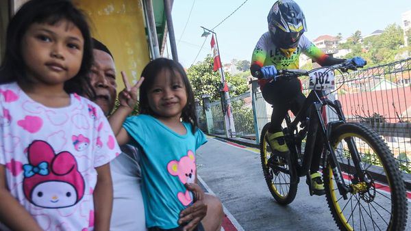 Serunya Balap Sepeda Urban Downhill Kota Batu Lewati Dapur-Turuni Tangga
