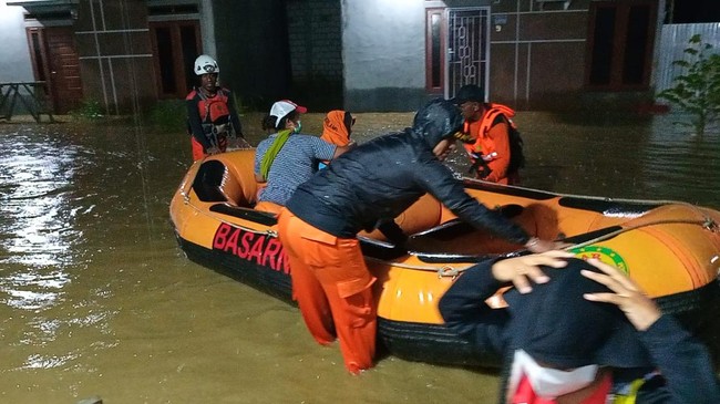 Sejak malam tadi petugas masih terus mengevakuasi warga terdampak banjir menuju tempat yang lebih aman.