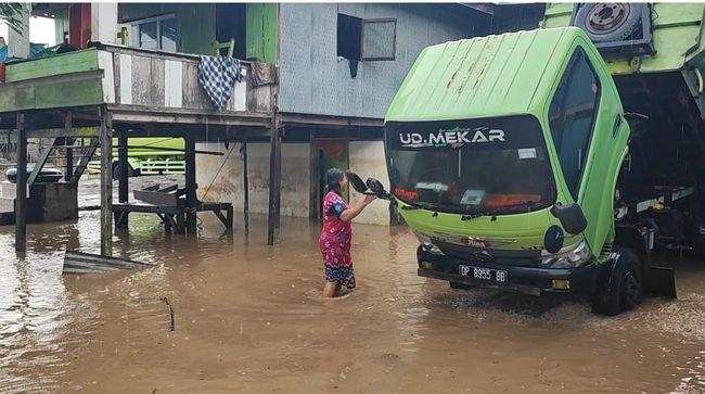 "Sekitar jam 12 tadi langsung naik air, kita kaget karena deras sekali," kata seorang warga, Tati kepada wartawan, Minggu (5/3/2022).