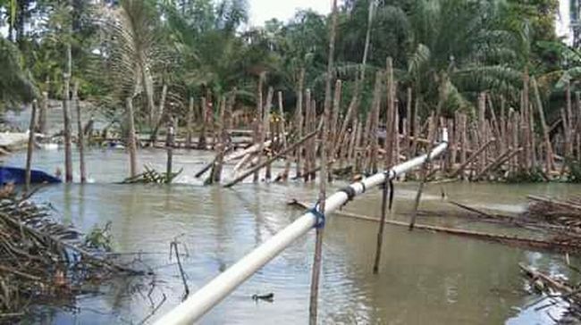"Upaya sementara kami di sini membuat tanggul dari patok untuk membendung aliran air yang masuk ke permukiman. Tapi sayangnya kadang belum selesai, banjir datang lagi dan akhirnya jebol lagi. Kalau sudah begitu kampung kami terendam lagi," tutur Muhardin.