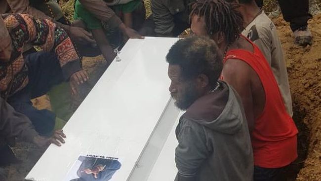 "Setiba di lokasi pemakaman tersebut dilanjutkan prosesi pemakaman dengan acara adat," kata Kapendam XVII/Cenderawasih Kolonel Inf Aqsha Erlangga dalam keterangannya, Selasa (8/3/2022).