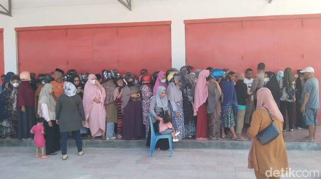 Warga di Kabupaten Bone, Sulawesi Selatan (Sulsel) rela mengantre 5 hingga 7 jam demi membeli 2 liter minyak goreng. Warga terpaksa antre lama karena stok minyak goreng semakin langka.
