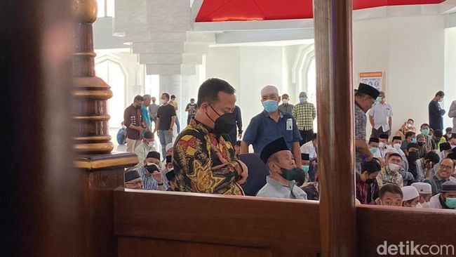 Pantauan detikSulsel di Masjid 99 Kubah, Andi Sudirman tiba sekitar pukul 12.04 Wita, Sabtu (12/3/2022). Ia datang mengenakan baju batik berwarna dominan hitam didampingi istri dan anak-anaknya.