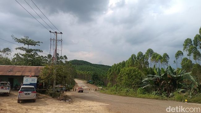 Pantauan di sekitar titik nol kilometer IKN Nusantara, kondisi cuaca sedang mendung dan berawan sore ini. Tampak kepulan awan hitam berada di langit sekitar lokasi Jokowi akan berkemah.