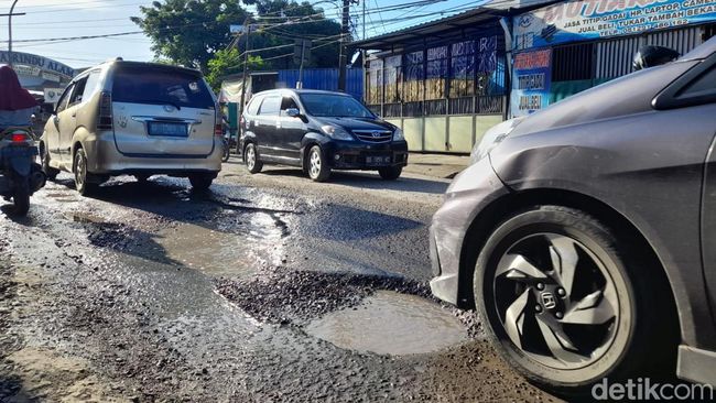 Pantauan detikSulsel, di Jalan Antang Raya Rabu (16/3) pukul 06.30 Wita, sejumlah lubang besar membentang di tengah jalan. Tampak genangan air sudah mengisi setiap lubang yang kembali membesar usai ditambal sulam Dinas PUTR Sulsel Kamis (10/3).