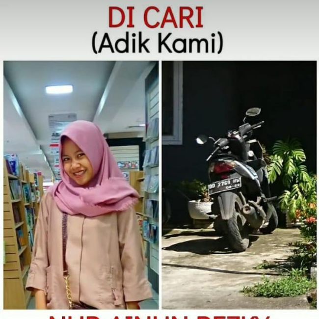 Perempuan bernama Nur Ainun Rezky (22), warga Kota Makassar, Sulawesi Selatan (Sulsel) dikabarkan hilang. Keberadaannya tidak diketahui sejak 4 hari terakhir.