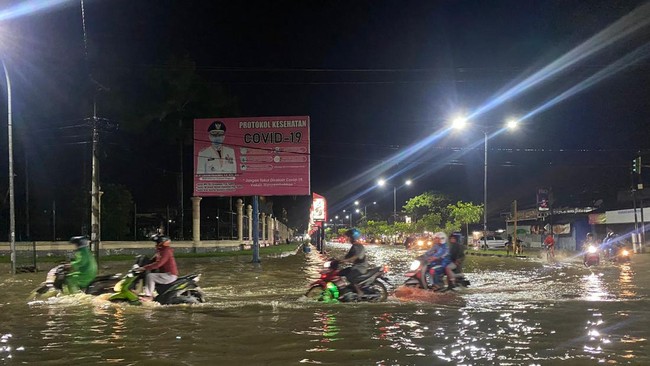 Pantauan detikcom Selasa (22/3/2022) banjir sudah merendam sejumlah ruas jalan protokol akibat hujan lebat yang mulai mengguyur sekitar pukul 19.40 Wita. Banjir terpantau merendam Jalan H Supu Yusuf, Jalan Sorumba, Jalan Abunawas, hingga kawasan MTQ Kota Kendari.