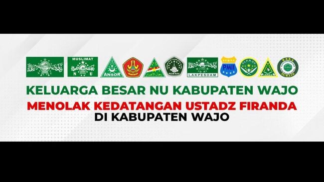 Keluarga Besar Nahdlatul Ulama (NU) Kabupaten Wajo, Sulawesi Selatan (Sulsel) menolak kedatangan Ustaz Firanda Andirja Abidin di tablig akbar dan silaturahmi dengan Gubernur Andi Sudirman Sulaiman. Penolakan ini didasari anggapan Ustaz Firanda sebagai penceramah radikal.