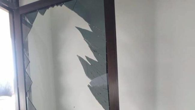 Tanpa diduga Yohanis Bassang mendobrak pintu kaca sehingga menimbulkan kerusakan. Pecahan kaca pintu kemudian berserakan di lantai.