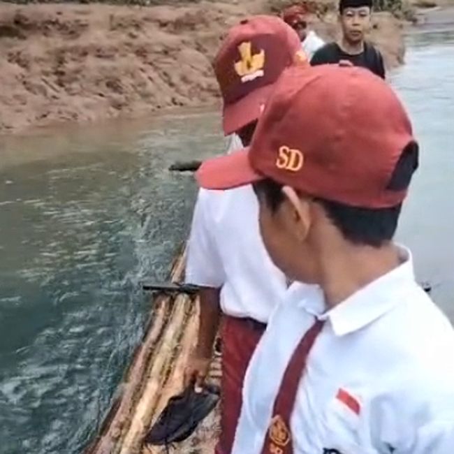 Hingga pada September 2021, video anak dan guru SD itu viral. Mereka menyeberangi sungai dengan rakit bambu. Anak-anak berseragam putih merah menenteng sepatunya dengan kaki basah, susah-payah untuk mencapai sekolah.