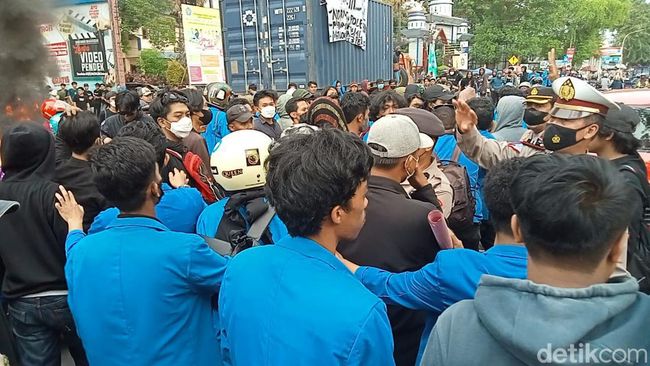 Pantauan detikSulsel, Kamis (7/4/2022), insiden keributan kericuhan melibatkan massa aksi dengan salah satu pengendara motor melintas. Pengendara tersebut dicegat mahasiswa karena hendak menerobos penutupan jalan.