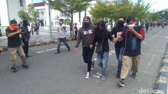 Lemparan batu tersebut lantas dibalas polisi dengan tembakan gas air mata dari arah halaman Kantor DPRD Palopo. Akibatnya mahasiswa kocar-kacir, namun hal itu tak berlangsung lama karena massa kembali lagi ke depan kantor DPRD dengan membawa batu dan melakukan pelemparan.