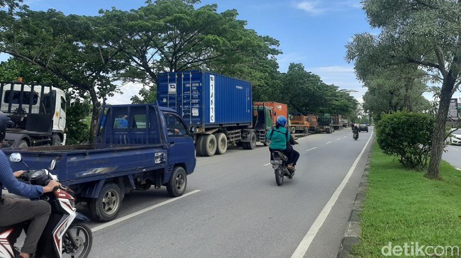 "Soalnya kalau berpindah baru dipanggil tidak ada namanya, nanti dicoret langsung. Jadi yang mengantre sekarang itu truk kemarin dan hari ini," paparnya.