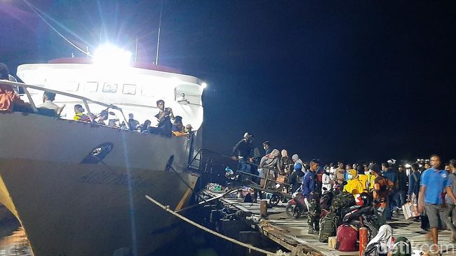 Pantauan detikcom pada Kamis (28/4/2022) malam, para pemudik memenuhi pelataran pelabuhan kapal malam Kendari-Raha. Bahkan antrean di loket pembelian tiket mengular. Untuk malam ini, ada dua unit kapal malam yang dioperasikan.