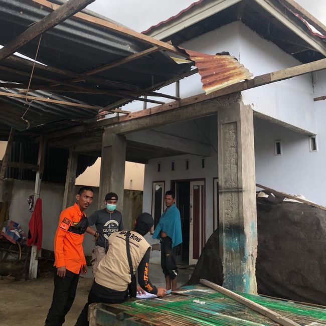 Angin puting beliung melanda Kelurahan Lonrae, Kecamatan Tanete Riattang Timur, Kabupaten Bone, Sulawesi Selatan (Sulsel). Akibatnya ada empat rumah yang dilaporkan rusak.