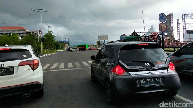 Kepadatan hanya tampak di lampu merah Simpang 5 Mandai. Kendaraan umumnya menuju ke arah Bandara Internasional Hasanuddin Makassar.