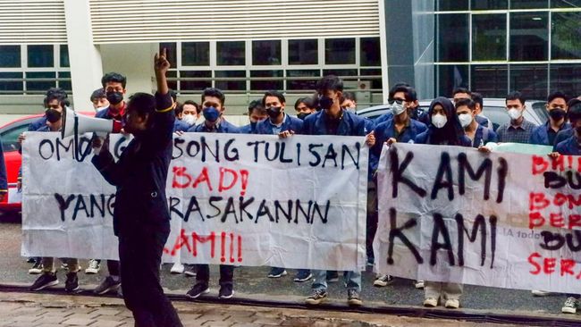 "Kami menuntut Prof Budi Santosa untuk meminta maaf dan klarifikasi secara resmi kepada mahasiswa dan rakyat Indonesia, serta Prof Budi Santosa membuat pernyataan resmi memundurkan diri dengan tegang waktu 7x24 jam," ucap Presiden KM (Keluarga Mahasiswa) ITK, Yustiadi Sampe Manggoali usai demo di Aula Utama Kampus ITK, Senin (9/5/2022).