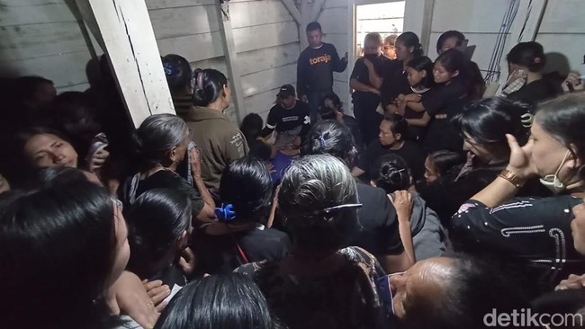 Suasana haru itu terlihat di rumah duka di Desa Sa'dan Pebulian, Kecamatan Sa'dan, Toraja Utara, Sulawesi Selatan (Sulsel) pada Sabtu (14/5/2022). Kedatangan jenazah disambut isak tangis keluarga dan warga desa setempat.