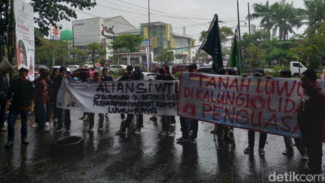 Sejumlah mahasiswa yang tergabung dalam Ikatan Pelajar Mahasiswa Indonesia Luwu Raya (IPMIL) berunjuk rasa di depan Kantor Gubernur Sulawesi Selatan (Sulsel). Massa menuntut Gubernur Andi Sudirman Sulaiman (ASS) meminta maaf atas pernyataannya yang menyindir warga Kecamatan Rampi, Luwu Utara agar keluar dari Indonesia.
