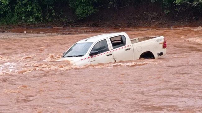 "Saat mobil berada di tengah-tengah sungai, mobilnya terseret arus deras pukul 13.30 Wita," tuturnya.