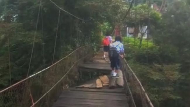 Dalam video yang beredar, tiga siswi tampak bergiliran akan meniti jembatan gantung ini. Terdengar derasnya air sungai yang mengalir dari arah bagian bawah jembatan.