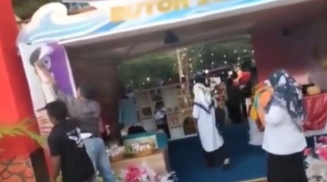 Dalam video beredar, tampak beberapa orang sedang mempertanyakan keberadaan baliho yang menampilkan foto mantan Bupati Busel. Kemudian 2 pria mendekati stand lantas merobek baliho tersebut.