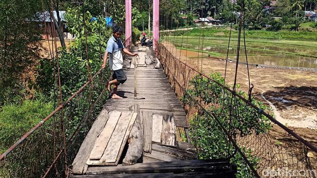 "Sudah lama begini. Bahaya sekali untuk anak-anak sekolah, karena beberapa tali gantung sudah hampir putus, kayu penyeberangannya sudah ada jebol. Jadi setiap saat bisa saja rubuh," tuturnya.