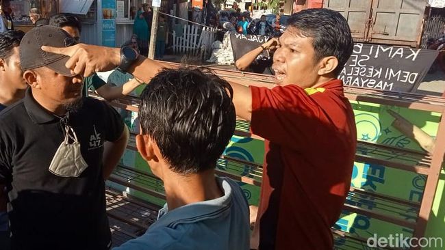 Pantauan detikSulsel, Selasa (31/5/2022) warga yang tengah berorasi terlihat saat polisi tengah membuka blokiran di Jalan Antang sekitar pukul 16.20 Wita. Warga yang tidak terima lantas adu mulut dengan polisi.