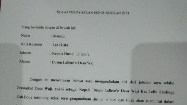 Perkara pemilihan kepala desa (Pilkades) di Kabupaten Bone, Sulawesi Selatan (Sulsel) membuat Kepala Desa Waji Setta mencoret 40 penerima bantuan langsung tunai (BLT). Setta juga dituding memaksa tiga kepala dusun (kadus) dan Plt sekretaris desa agar mundur dari jabatannya.