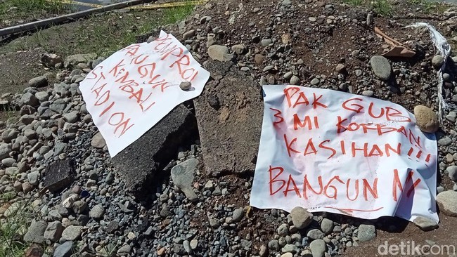 "Pak Gub, 3 mi korban kasihan!!! Bangun mi (Stadion Mattoanging)," tulis dalam kertas itu.