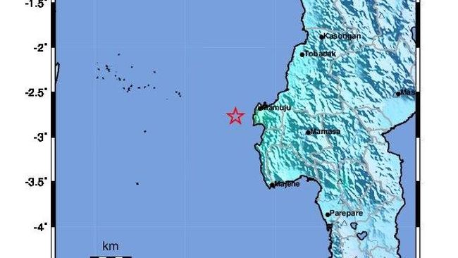 Tepatnya berlokasi di laut pada jarak 26 Km arah Barat Tapalang Barat, Mamuju, Sulbar pada kedalaman 10 km. Hingga pukul 14.25 Wita, hasil monitoring BMKG menunjukkan adanya satu aktivitas gempa bumi susulan (aftershock) dengan M 2,8.