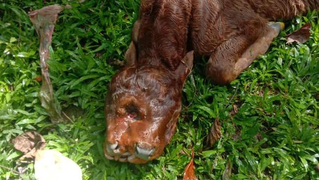 Irham mengatakan sapi itu milik warganya Muhammad Tamrin (40). Sapi itu lahir sekitar pukul 10.00 Wita dengan berat 35 kg, namun mati pada pukul 12.30 Wita.