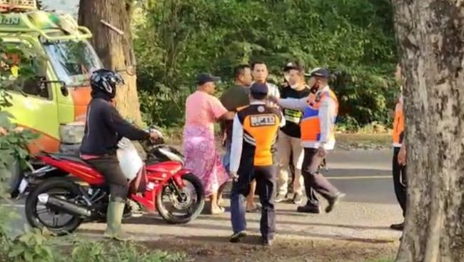 Dia melanjutkan sopir yang turun dari truknya lantas menarik kerah baju korban. Namun dengan cepat dilerai oleh petugas lain di lokasi.