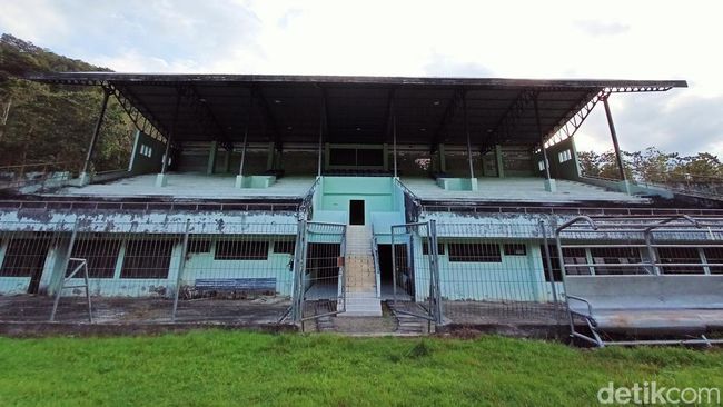 Sementara di tribun stadion, terlihat sudah dipenuhi dengan lumut. Papan skor pertandingan juga sudah rusak. Rumput stadion pun gondrong akibat jarang dipangkas.