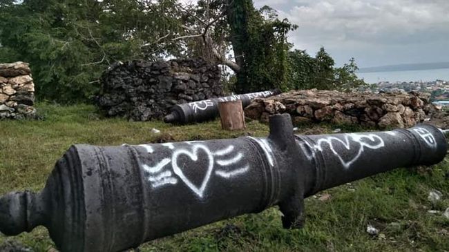 Sejumlah meriam yang berada di kawasan cagar budaya Benteng Keraton Buton di Kota Baubau, Sulawesi Tenggara (Sultra) dicoret-coret orang tak dikenal (OTK). Aksi vandalisme terhadap peninggalan benda bersejarah ini pun diselidiki polisi.