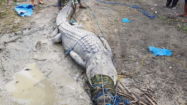 "Karena meresahkan warga dan menghindari adanya korban, warga berusaha menangkap buaya tersebut dengan alat seadanya. Kita kemudian evakuasi pakai tali tambang," ujarnya.